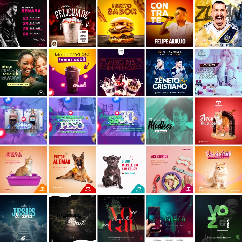 São artes prontas para postar nas redes sociais. todas são editaveis e te damos o total direito de revenda.